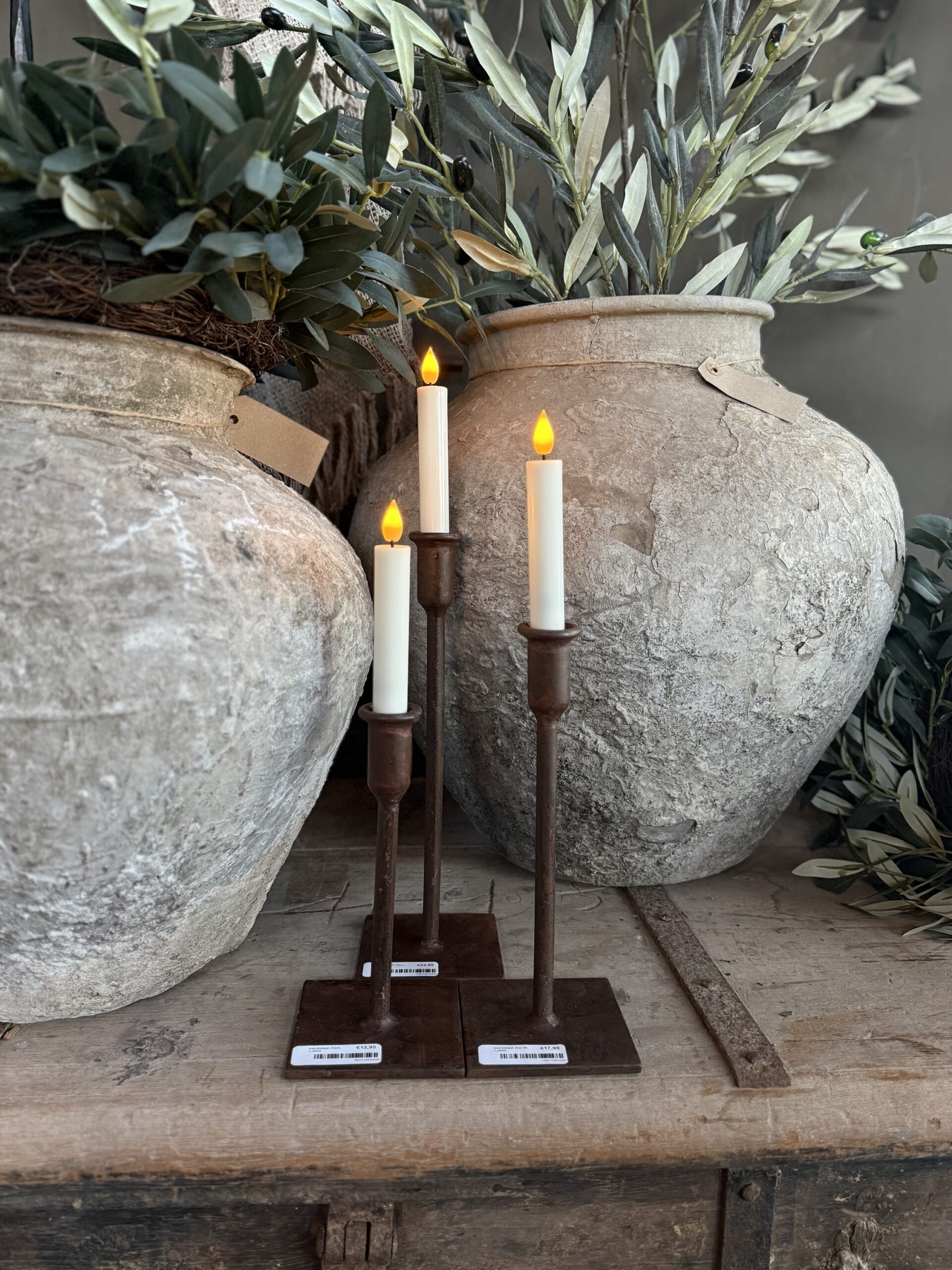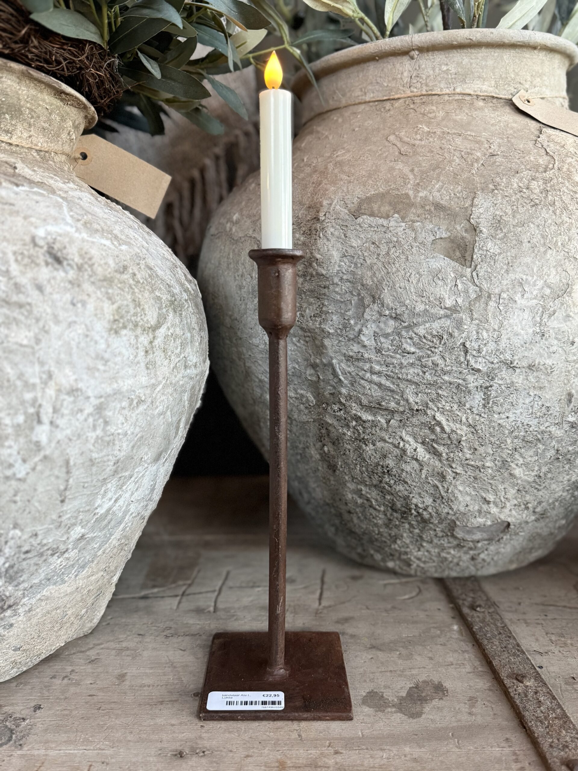 Prachtige ijzeren kandelaar S met roestige finish van het merk Luksa, 20cm hoog. . Geschikt voor dinerkaarsen.